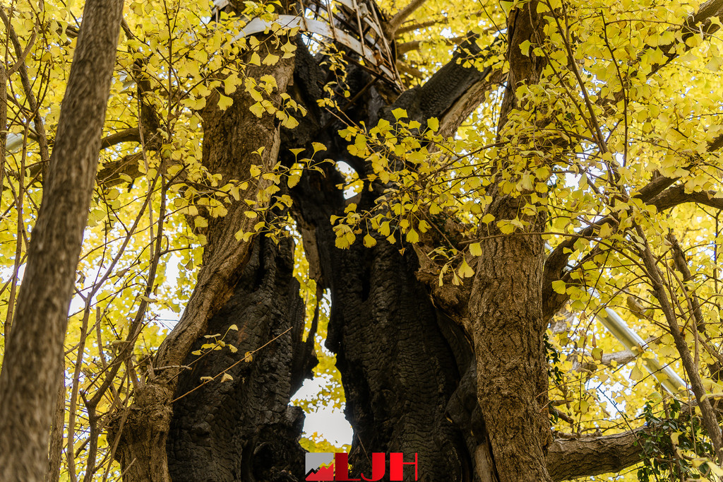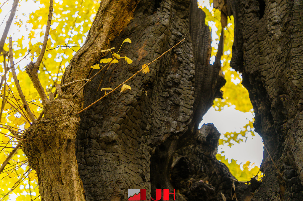 经历了这么多的灾难之后,师渎村这棵“树坚强”,依旧生命力旺盛,因为是棵雌性的银杏,每年秋季能结出银杏果,每年冬季可以把银杏叶变成金黄。只是你可能会奇怪,大树的树干就像仅保存下来一层皮,它是怎么把大地的养分源源不断送上自己的枝头,送到银杏叶上的?