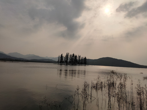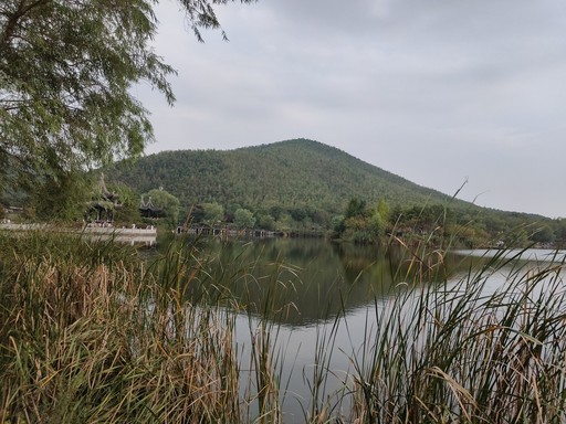 云湖的中央有座水中的小岛,叫做铜盆山,模样颇像一只神龟,龟头朝着大觉寺的方向,仿佛是一个虔诚的信徒,正在聆听佛法。又像是大觉寺的忠实守护神,庇佑着前来朝圣的信徒和游客。