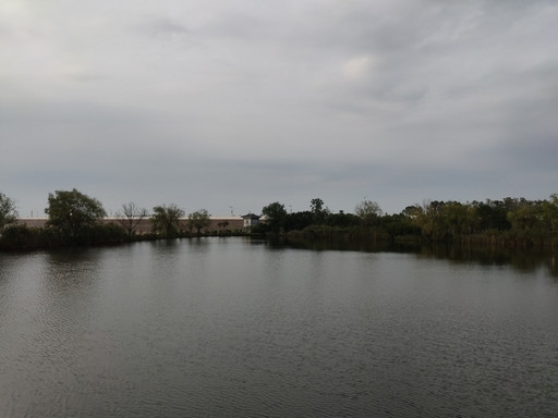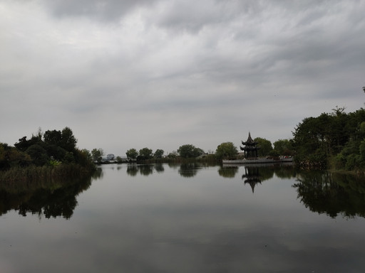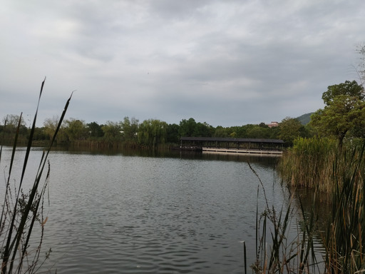 沿着湖畔往前走,也没有刻意地寻找什么目的地,只是看到有路就往走一段,路到尽头就拐个弯。湖风和缓,天气不那么太炎热,正宜漫步湖滨。有一间长长的水榭,可以临水观湖。