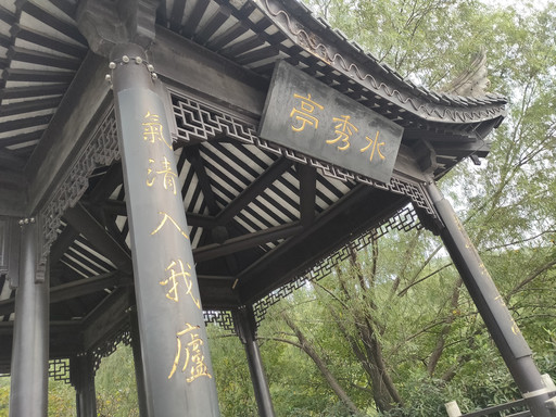 水秀亭是一座比较小巧的四方亭,亭柱上有一副对联,亭子本身没有什么出奇的地方,倒是欣赏湖光的好地方。
