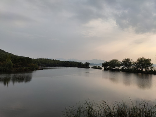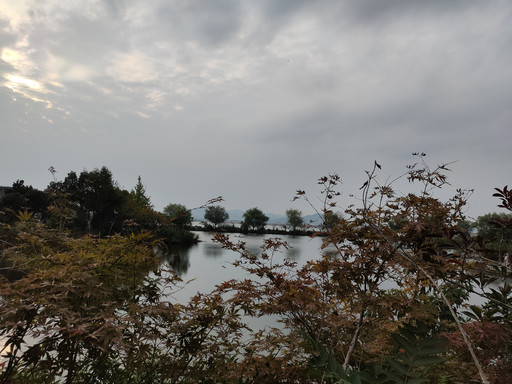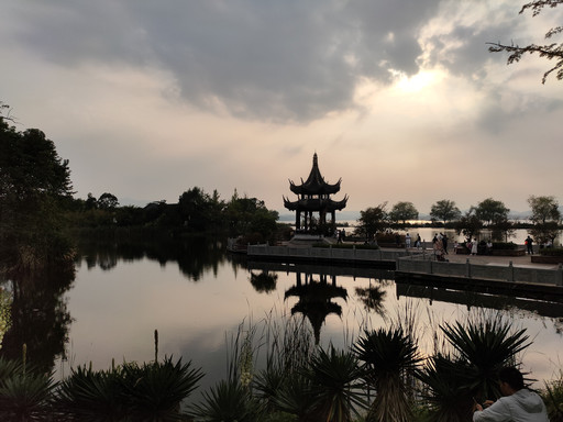 “云湖夕照”是云湖十景之一,可惜的是今天的天气不算太好。不过我们还是挨到了夕阳西下的时分,在亭中静静等候。因为云层的阻隔,今天的阳光少有耀眼的时候,不过还是把湖水渐渐地染红。湖天一色,原来不仅仅是天蓝蓝水蓝蓝,也可以是绯红的天和绯红的水。金光点点撒下,满湖的碎金;绯色弥漫成片,湖面也流光溢彩。这样的妩媚,让人想到了活色生香的美人,正在跣足而舞,曼声而歌。