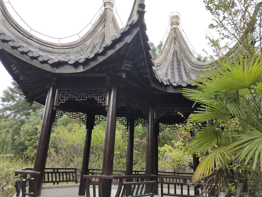 照壁后是大大的草坪,迎面可以看到倒映在水面的碧莲亭。这座小亭探入湖中,身姿秀美。坐在亭中观景,长堤上树影倒垂,阳光暖暖地反射着弧线。张开双臂,仿佛碧波清水都可以揽入怀中。