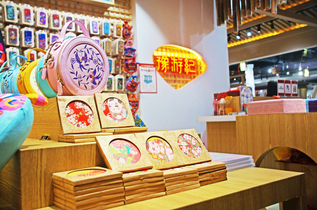 最后一家就是叫豫游纪文创店铺,他们以传统文化为主,原创设计衍生了很多创意家居(毯枕,抱枕,颈枕,年画....)、服装配饰(包包,手机壳,手链......),总之小玩意儿很多,可以细细看看,也可以找店员给你介绍每件东西背后的寓意什么的,真是涨了见识了。