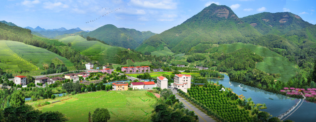 清晨醒来,当你打开家门,鸟鸣便会带着湿漉漉的空气从树梢传到你的耳畔来,阳光透过云层照耀在你身上,驱走寒冷,带来一片祥和宁静的气息。远处群山如黛,青空下,有三五人在劳作。