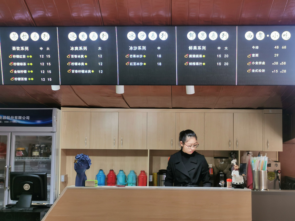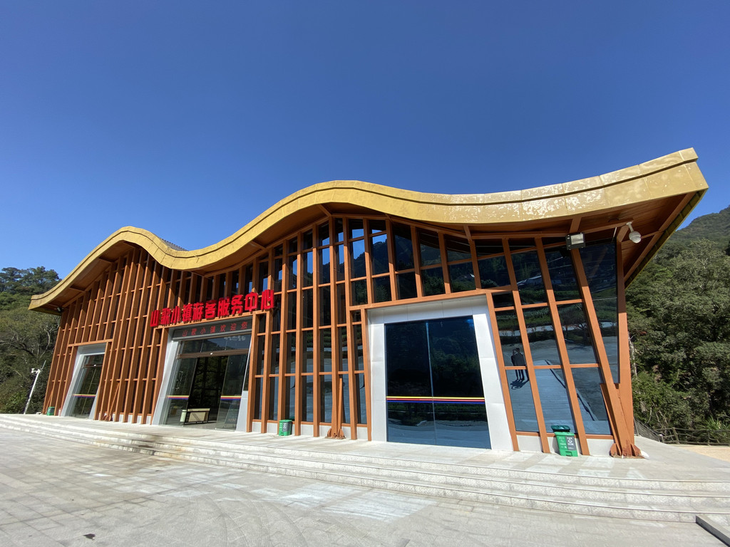 观光的出口处,有外观如“乐谱”线条状的山歌小镇服务中心。一楼是游客中心,二楼是有供人休憩的空间,负一楼则是独居一都特色的“红粬”系列伴手礼产品展示厅,可以看到各式各样用红粬做成的衍生品。