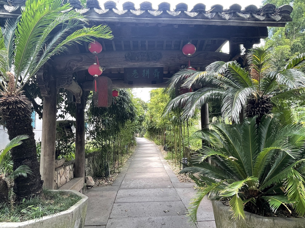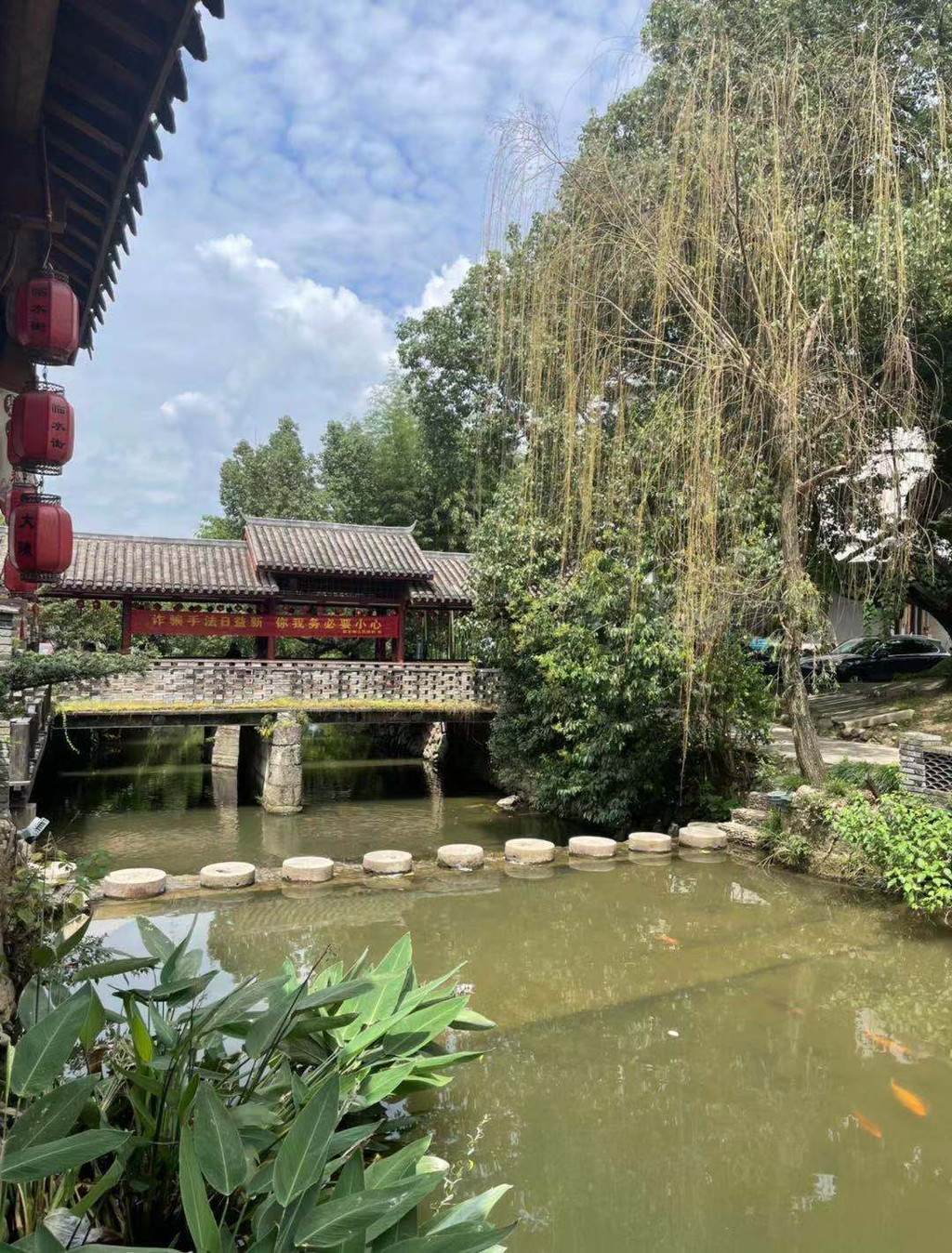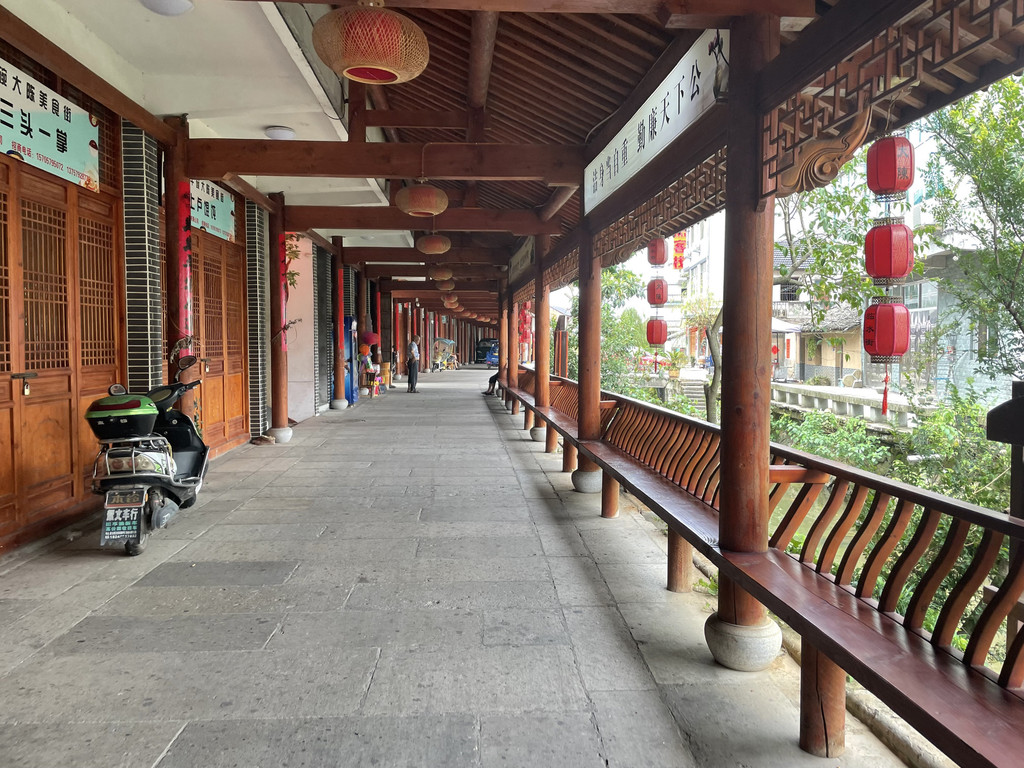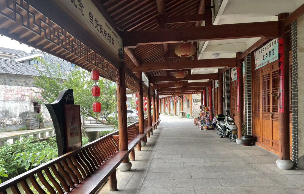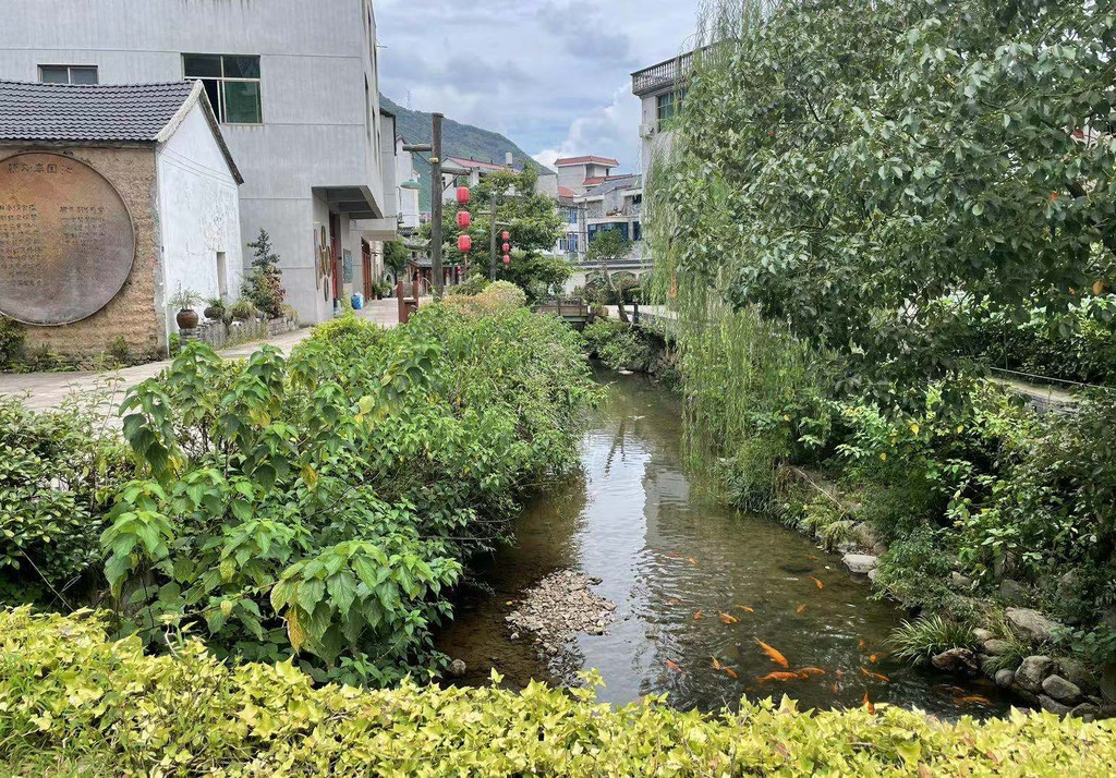 穿过大陈村的停车场,便会被迎面临水街上高挂的串串红灯所吸引。临水街沿着贯穿大陈村的潺潺溪流而建,长约300多米,已有不少永康本地企业入驻,可供游客选购当地特色产品。