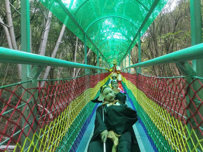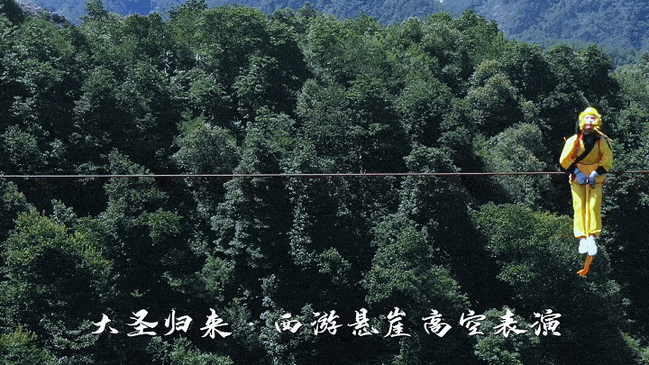 【西游悬崖高空表演】景区深挖西游故事,邀请资深的高空表演团队身穿西游服饰表演,向游客展示燕子掠空、燕子探海、金鸡独立、神童走缆、雄鹰展翅、钢缆板桥、凌空飞燕、童子拜佛、罗汉倒立、摘星揽月等各种炫酷动作。