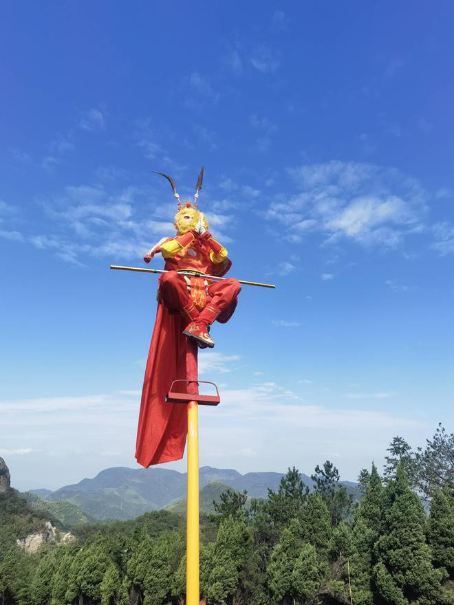 【美猴王高杆不倒翁】景区特别引进火遍全网的美猴王高杆不倒翁在世界上最大的佛手-天空之镜表演,获得游客一致好评。