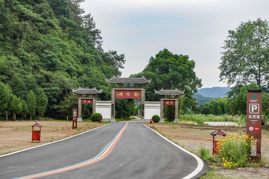 景区大门雄伟霸气,两侧群山郁郁葱葱,田野青翠欲滴。进入大门以后只见遍地山花绽放,漫山桐花烟雨,俨然是一处世外桃园。