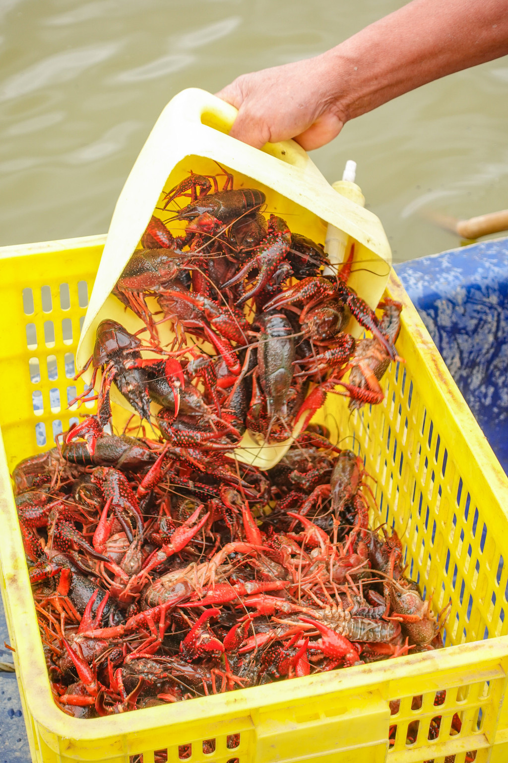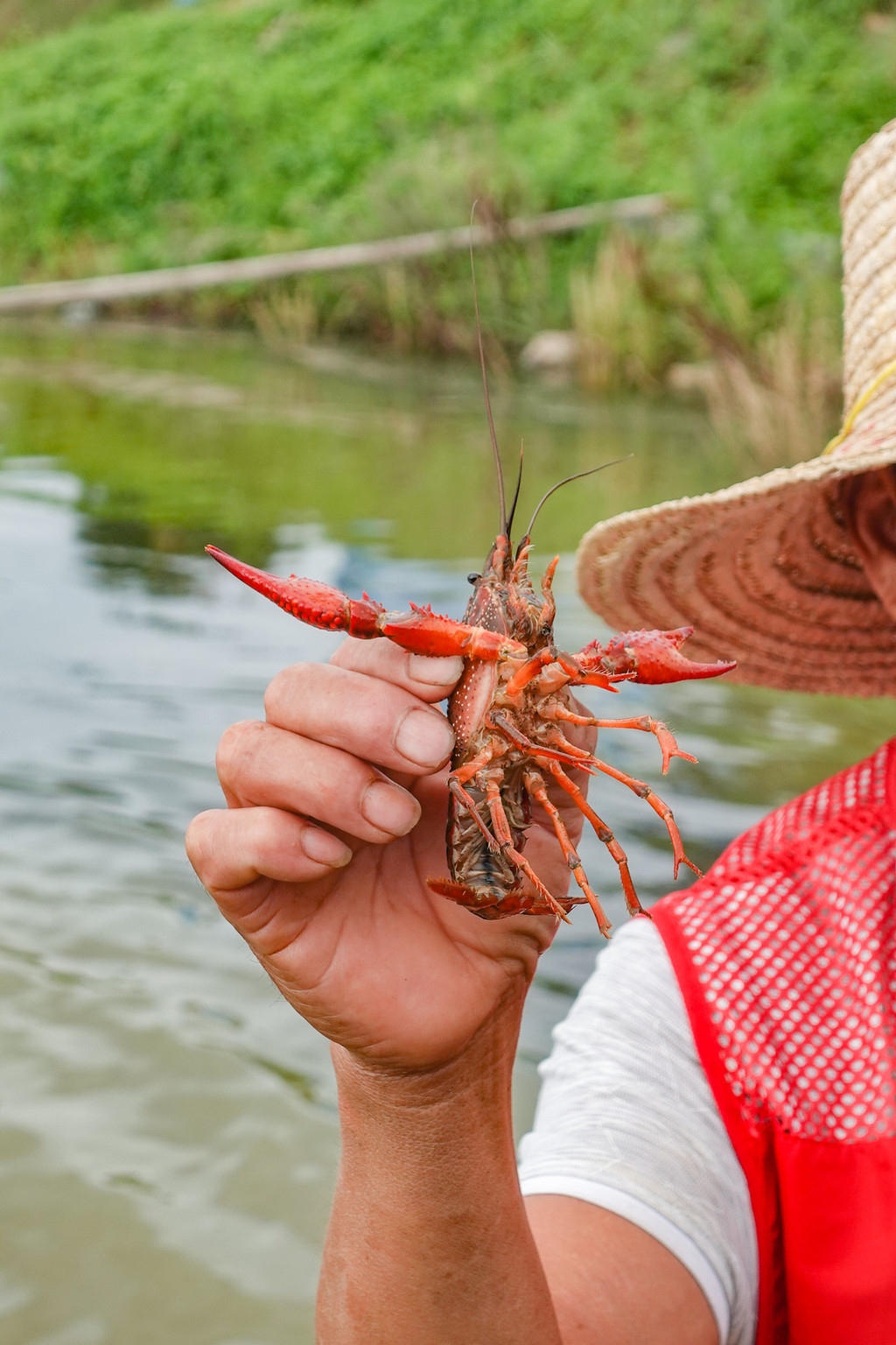 第二个要打卡的地方十分有趣,是这里的稻虾基地,养殖面积超过十万亩,带动了当地群众致富。这里养殖出的小龙虾个大体肥、肉质饱满,堪称一绝。