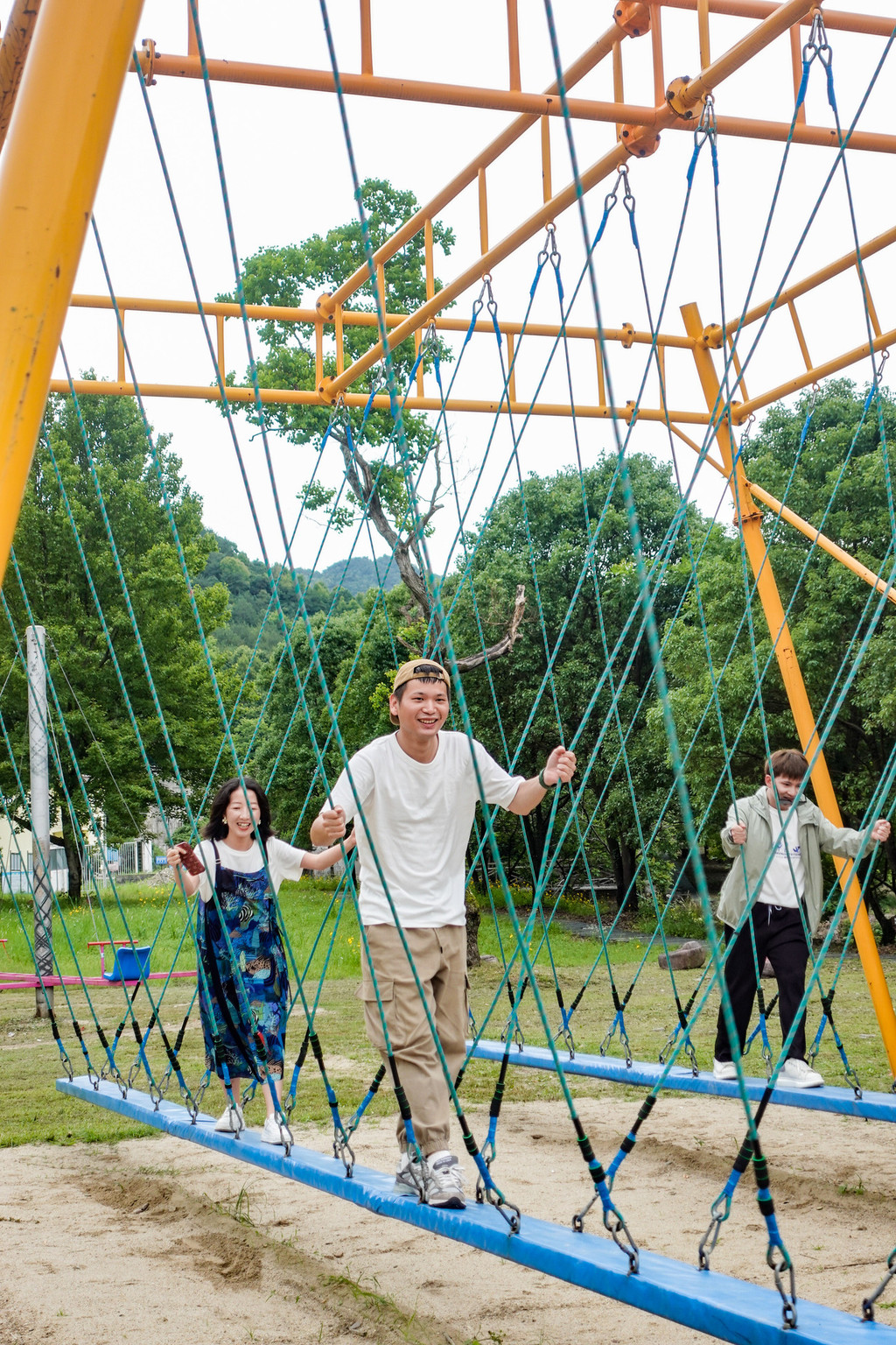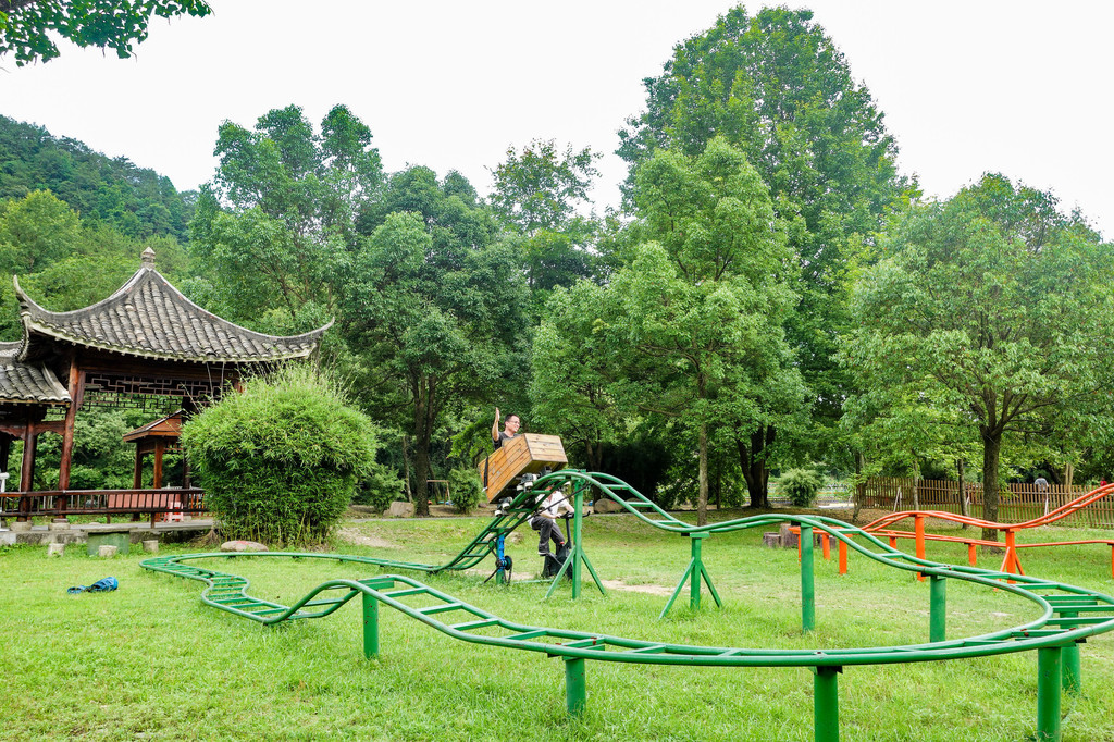 这里不仅有如诗如画的风景,还有各式各样的游乐设施,让你沉浸在美景的同时,还能活动你的四肢。水上晃桥、水上链桥、水上滚筒让你感受到水的柔情,草地胜利墙、草地背甩、草地翘翘板让你体会到冲关的豪情。