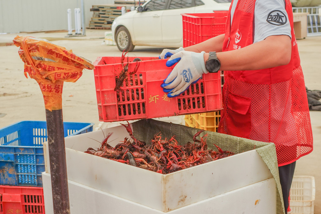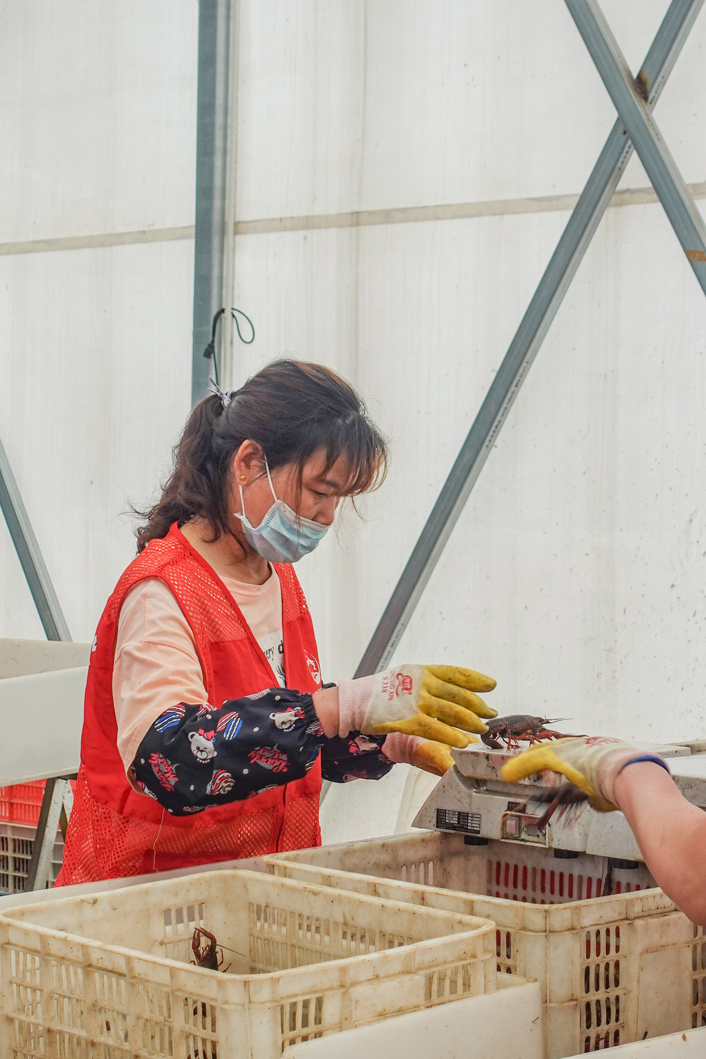 稻虾产业基地里,大家正忙得热火朝天,工人们有的忙着捕捞小龙虾,有的忙着称重,看着他们脸上的笑容,就知道今年又是一个丰收年。