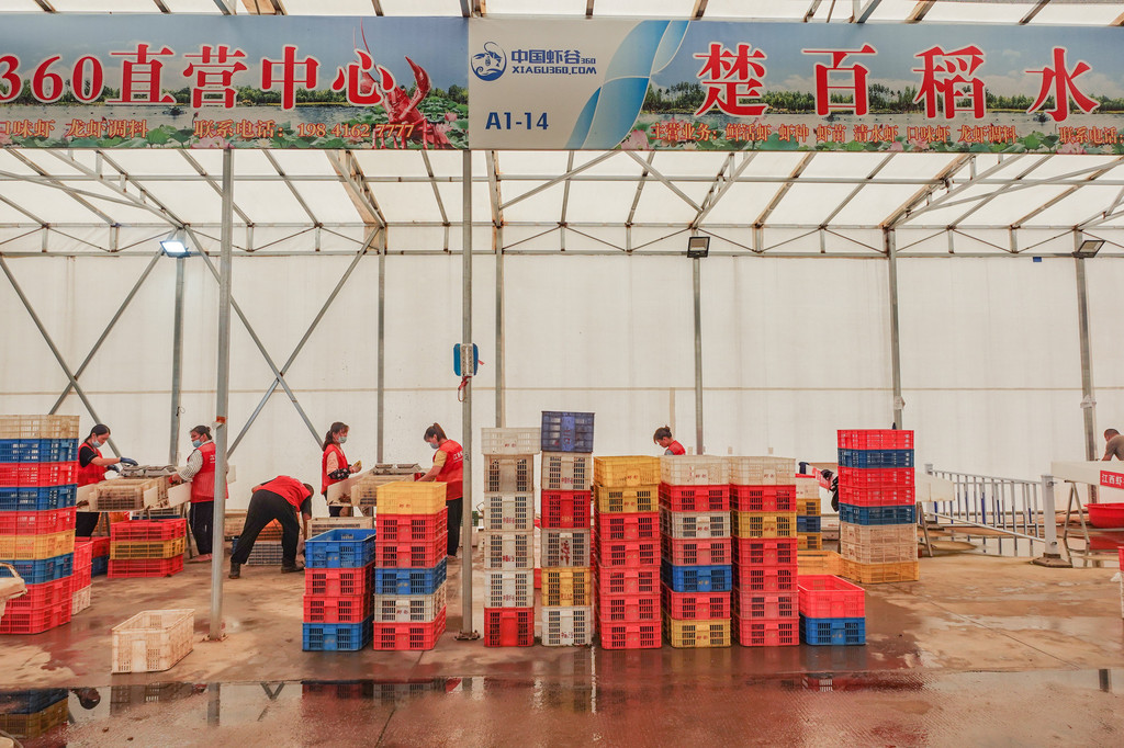 在交易中心,一箱箱鲜活的小龙虾正过称上车,等待运往全国各个城市的小龙虾市场。永修县是全国重点渔业县,也是全省最大的小龙虾养殖县。去年11月,永修县与潜网集团签订“中国·稻虾乡里”产业基地项目,导入推广潜江“稻虾连作”模式,累计投资10亿余元打造稻虾养殖、销、加工、餐饮为一体的稻虾产业。