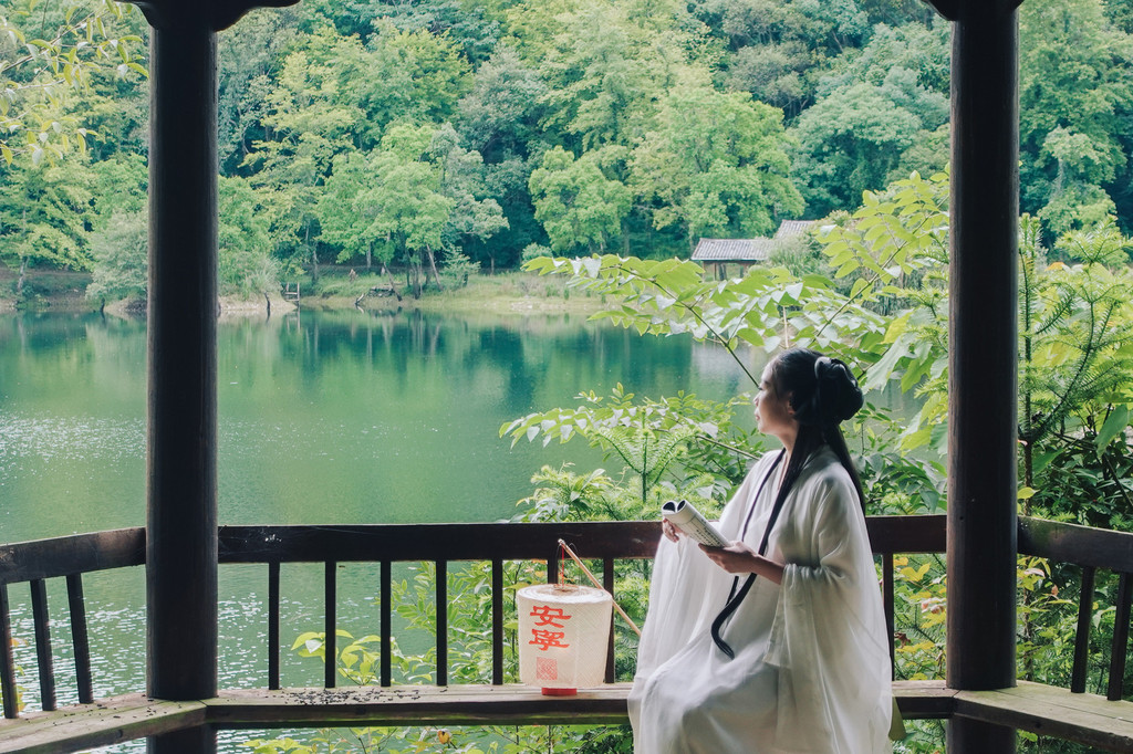 坐在亭中,看着远处的山水,整颗心感觉都平静下来了。波光粼粼的水面,蓊蓊郁郁的树木,享受着这里清新的空气,可以洗去一身的疲惫。