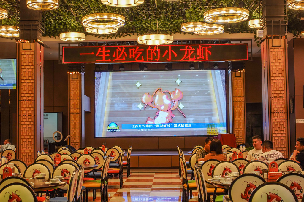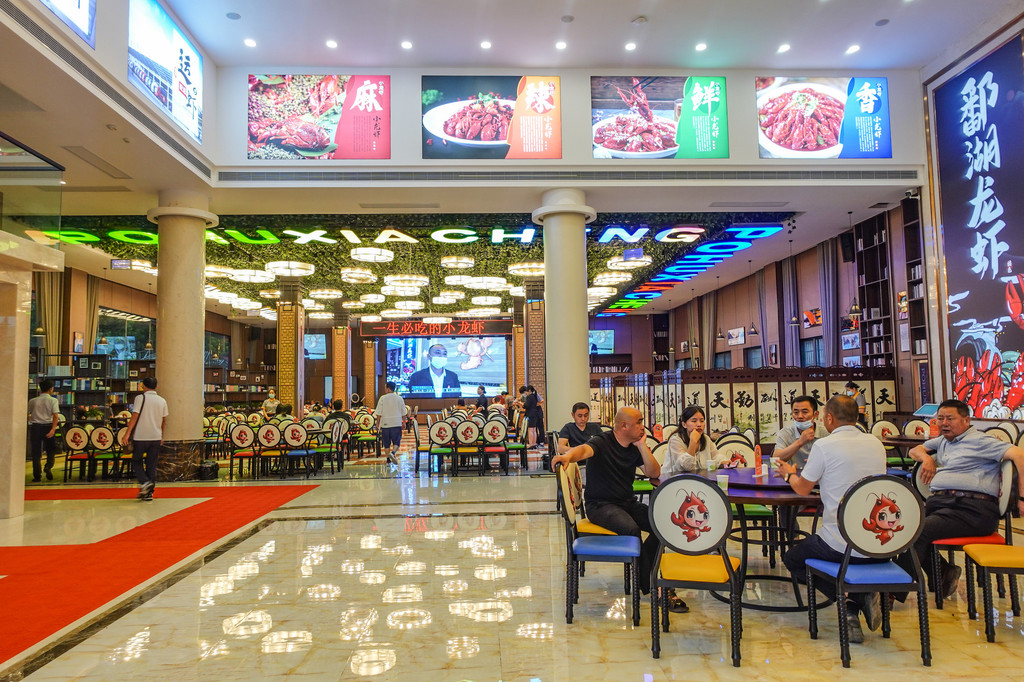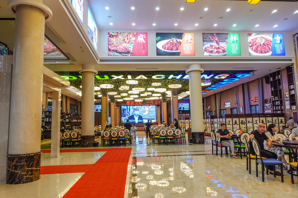 鄱湖虾城位于永修县鄱湖路与横山路交叉路口,隶属于江西虾谷集团,号称“一生必吃的小龙虾”。店里空间很大,装修格调舒适宜人,精致的灯具搭配上整齐的座椅,明丽的环境下店里显得富丽堂皇,非常有格调。