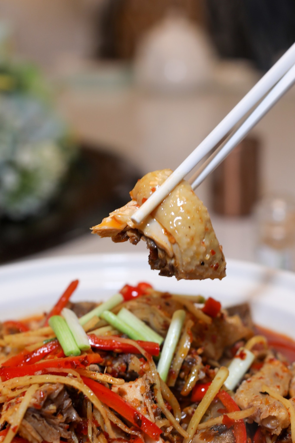 鸡肉 清远 鸡是有名的美食,鸡肉嫩滑,鸡皮爽脆。其实 连州 同属于 清远 ,来到这里当然不能错过一只靓鸡。鸡肉用辣椒和仔姜一起烹饪,辣椒的香味渗入到鸡肉当中,层次非常丰富。