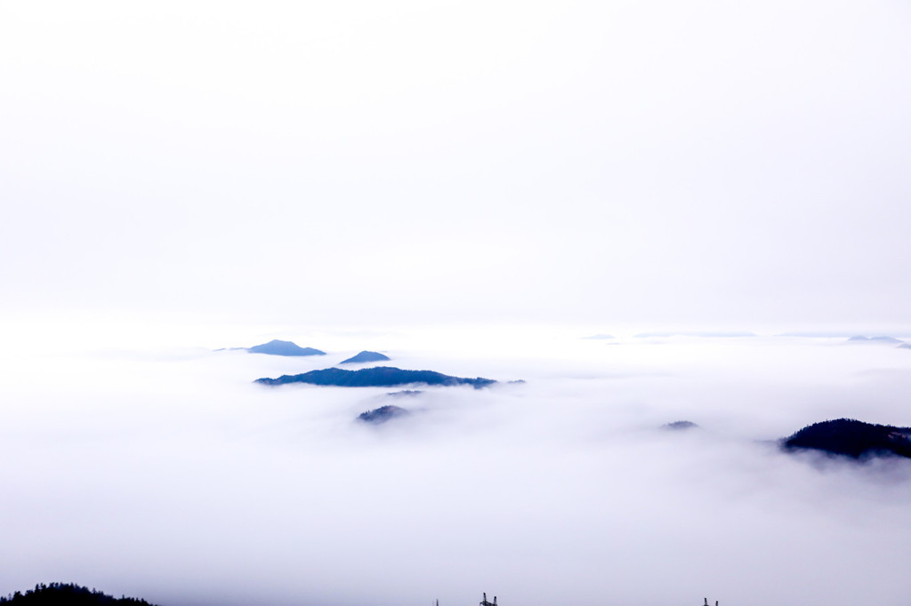 上山路上雾气颇大,让我一直担心那白茫茫的一片会让我看不到这里的美景,但当来到山顶的时候,却是一件穿过了云层,来到云巅之上。