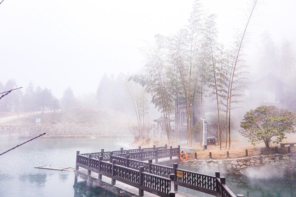 隐藏在竹林中的栋栋小楼同样用了颇为古典雅致的设计,用竹和原木作为主要材料的小筑非常安静,很有一种回归自然的美好感觉。