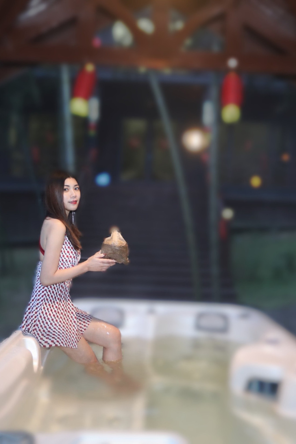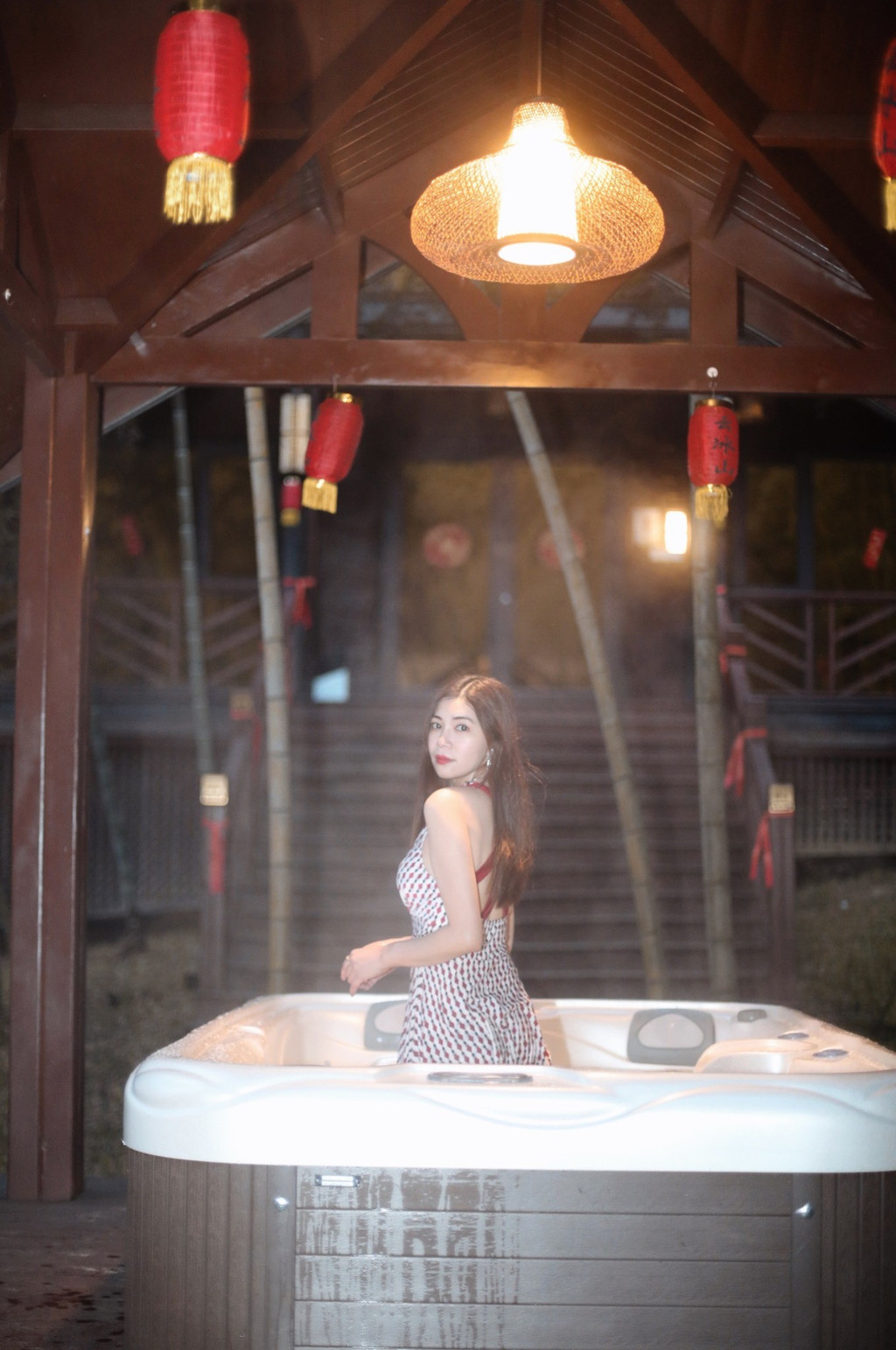 在酒店的竹林中,院落有舒适的瑶浴池。
