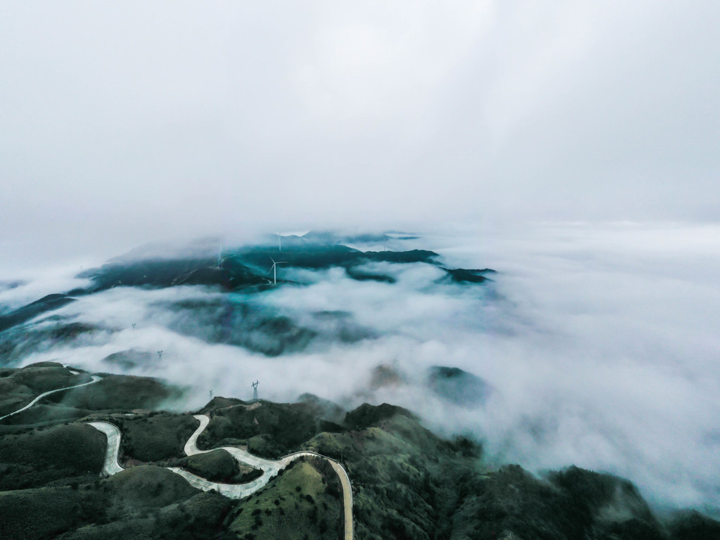 山顶山的风车更是给这里赋予了更多动的风景,和云海在一起,非常壮观。