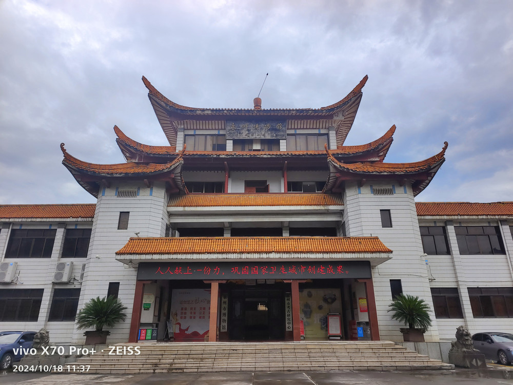 10月18日早晨在酒店吃过自助早餐,餐后9点乘24路公交在潇湘技师学院转301路到区政府下,步行300米到永州博物馆。