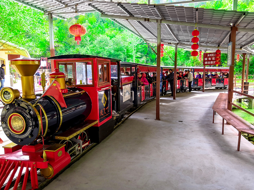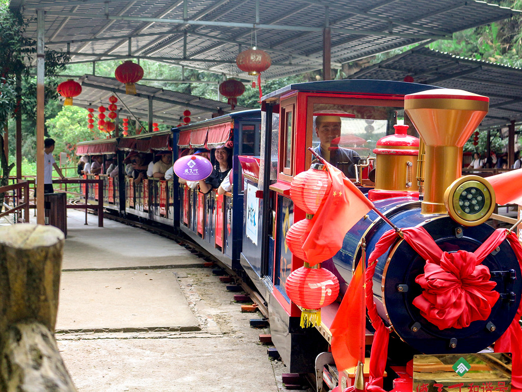 如果大家不想走路的话,可以乘坐小火车通行。目前我们有两辆小火车,每辆车3节车厢,每节车厢可乘坐12人。到达主景区“绿林景区”只需要12分钟。最主要是这个小火车颜值太高了!简直是丛林间一道靓丽的风景线
