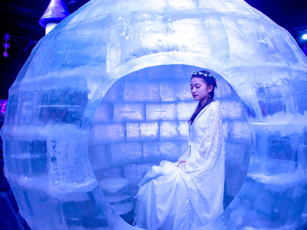 它的冰雕摆设是参照的各路武侠人物,可以与朋友猜一猜都是哪些人,别有一番趣味!