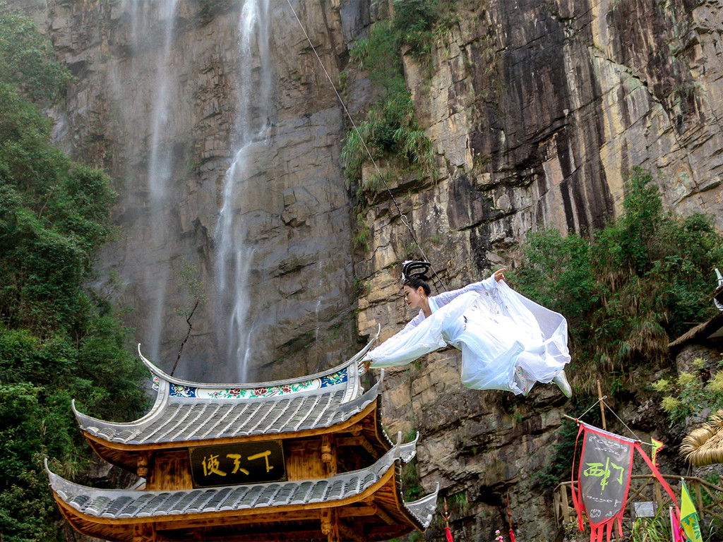 没想到景区可以玩吊威亚,这次到侠天下旅游,真是圆了我的仙女梦