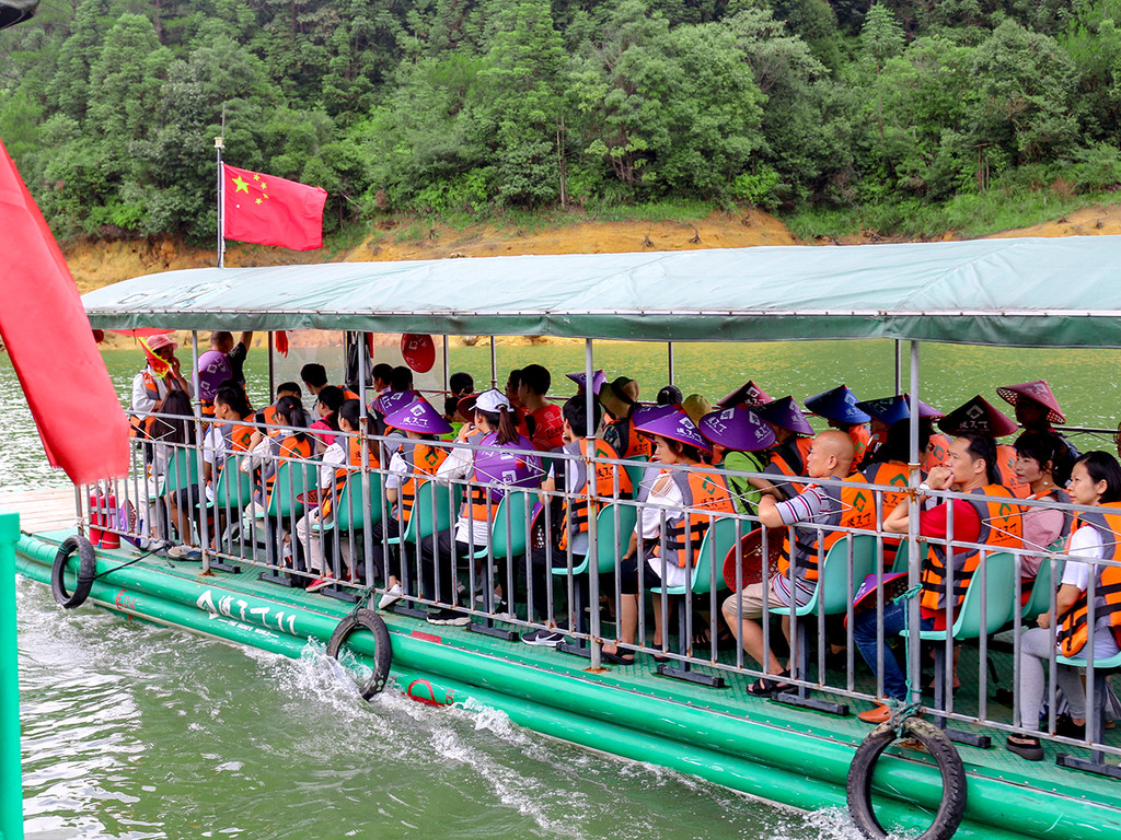 穿过镖局,进入江湖景区的码头,坐上竹筏行驶与碧湖秀水之间,山川草木逐渐后移,全程约12分钟,安静的坐下来赏景拍照,这就是所谓的人在江湖漂了吧!
