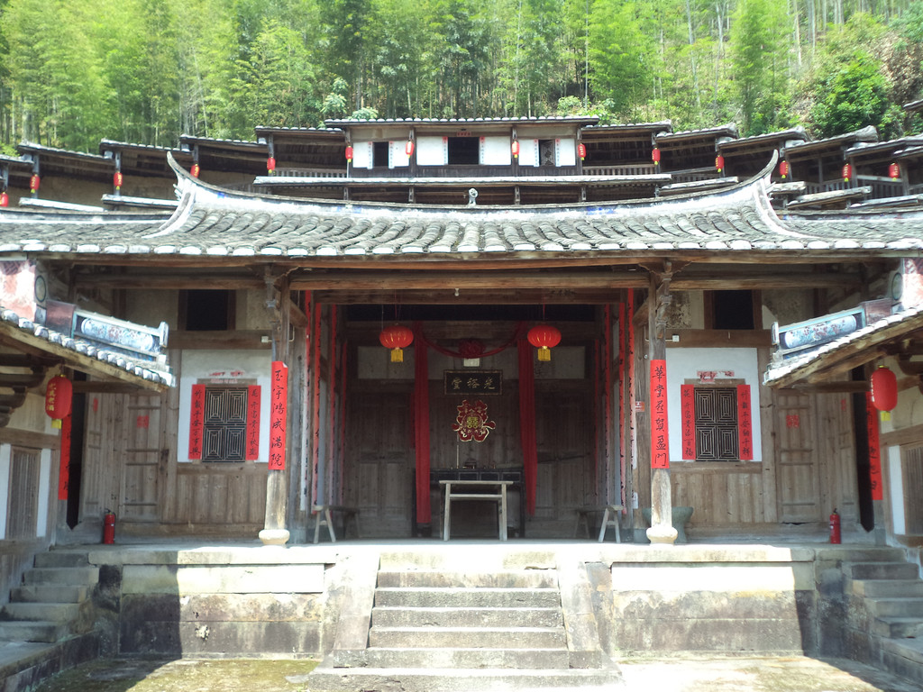 光裕堡又称天六堡,建于道光三十年(公元1850年),由邱氏先祖长厚公祖孙三代建造,占地面积2600平方米,建筑面积2200平方米,坐西向东,前方后圆,依山势分四级台基构建,前后高差近15米,明间中后部设太师壁,挂着“光裕堂”匾额,我发现永泰庄寨和沙县、尤溪古堡,除了庄、寨、堡名外,里面还有堂名,但二者有时并不相同,如嘉禄庄、水美三堡。