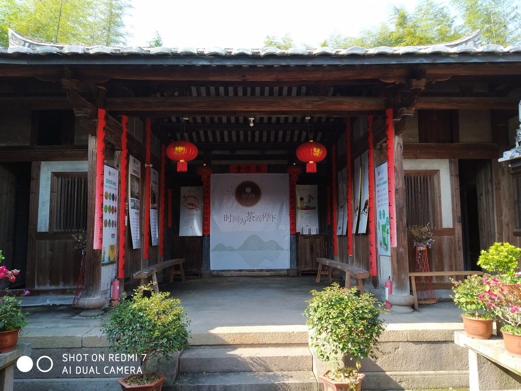 坐动车到三明北站,这里距三明市区27公里,而距沙县只有不到4公里,出站后打了1辆的士直奔沙县西郊的水美村。水美原称水尾,后雅化为水美,距沙县城小吃城仅9公里,村民多姓张,祖先是来自安溪蓬莱的移民。我们打的这辆的士,司机是个新手,从未去过水美村,导航显示走大洲大桥路程最短,全程仅14.5公里,但到了村庄附近导航也失灵了,车掉了两次头,最后只好询问路边村民,向前不远很快到达水美村,过新建的村部后拐向左边的支路。水美三堡之间距离不远,其中双吉堡与双元堡背靠背,双兴堡与双吉堡面对面,这几年为了申报“国保”作了一定的投资,建了道路、指示牌、休息亭、厕所,村部对面还有一家新客栈,根据路牌很快找到坡下方的双吉堡。双吉堡虽规模较小,却是水美村的第1座土堡,始建于清道光二十七年(公元1847年),系张锺开4个儿子合建,其父所居,称为祖屋,亦称敬德堂,坐北朝南,前方后圆,占地面积1090平方米,建筑面积420平方米,四周砌有4米高的堡墙,大门正对一片水田,另在右设有一偏门朝向东方,取“紫气东来”之意。正厅有“敬德堂”3字,这可能是双元堡的别号吧,从厅上的布置看,这里已有商家进驻,堂正中大幅的商业广告“时间为茶而停下”占据了主导地位。
