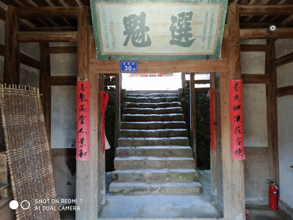 尤溪县也有古堡,我选定了离县城最近、也是最有名的台溪乡书京村双堡,县城至台溪19公里,每天有10班农客,但台溪至书京村还有3公里路,网上有一个厦门女孩4年前发表的《周末尤溪二日游》,给我们提供了一些参考,她们当年去书京村就是包车,价格150元。第二天上午,我们在汽车站前叫了1辆的士,按里程打表计费,快到台溪乡所在地时有路牌指引,车右拐上山进入峡谷,一路林木繁茂,遮天蔽日,非常凉爽,十几分钟后就看到同一面山坡上的两座古堡。由于半山正在修路,我们沿着石阶先去上面的光裕堡,到达堡前已是满头大汗,大门上并无堡名,而是镌刻着“宽厚流风”4个大字,据说是当时的县令亲笔所题,两侧楹联为:“光前集百福,裕后庆千祥”,集第一个字就是堡名,门边左侧立着青色的“省保”石碑,落款是省政府。走进大门,迎面就是“选魁”的匾额,再登十几级石阶就来到规整、干净的大院。