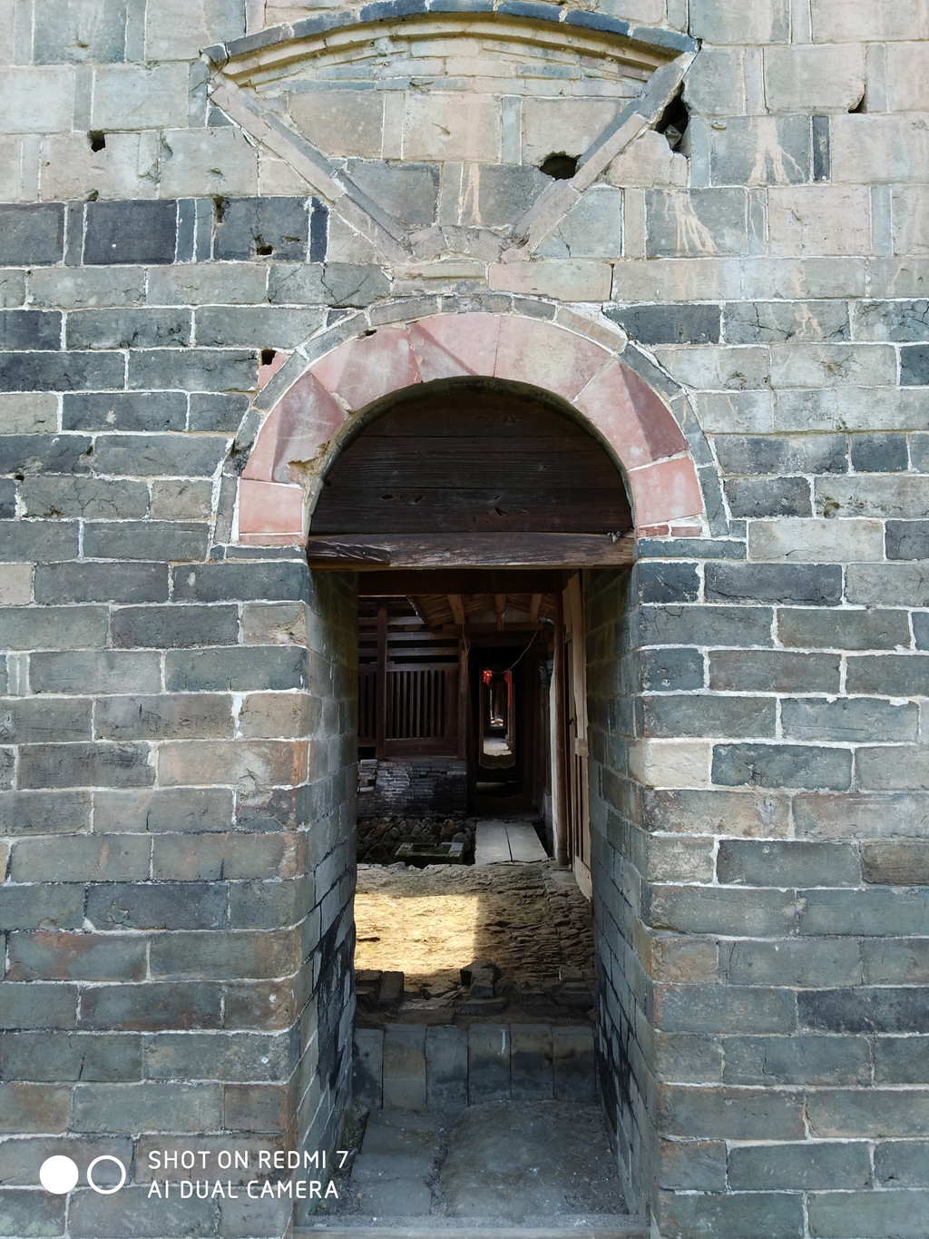 根据我的观察,茂荆堡入口还有3个特点,一是大门不是开在正中,而是偏右设置;二是门外的台阶多达30多级,这在庄寨、古堡中应是首屈一指;三是与其他土堡走进大门即可登堂入室不同,进门只是一个低矮的小厅,再上几个台阶左拐是个小小的走马廊和小门,旁边还设了一个类似保安门房的耳室。
