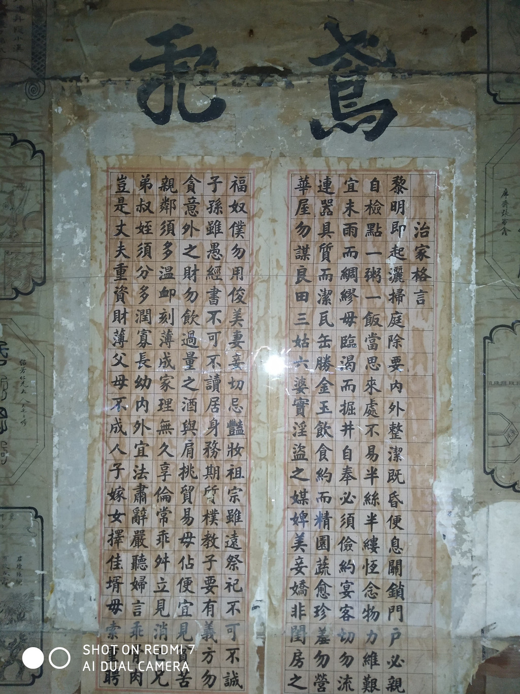 但茂荆堡最与众不同的是,房间墙上贴的各种报纸竟达几十种之多,既有中文也有英文,既有近代也有现代,书房墙上还贴有主人亲笔所书的《治家格言》和清代的诗句字画,使茂荆堡内充满了浓厚的文化气息,这是一座集居住、防卫、私塾、家祠等综合功能齐全的古堡,看来名医不仅会赚钱,而且很有文化,老者对此充满了自豪。