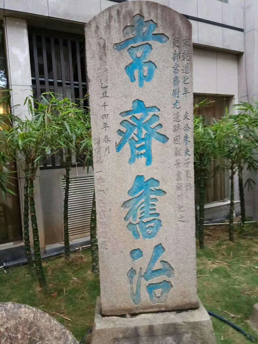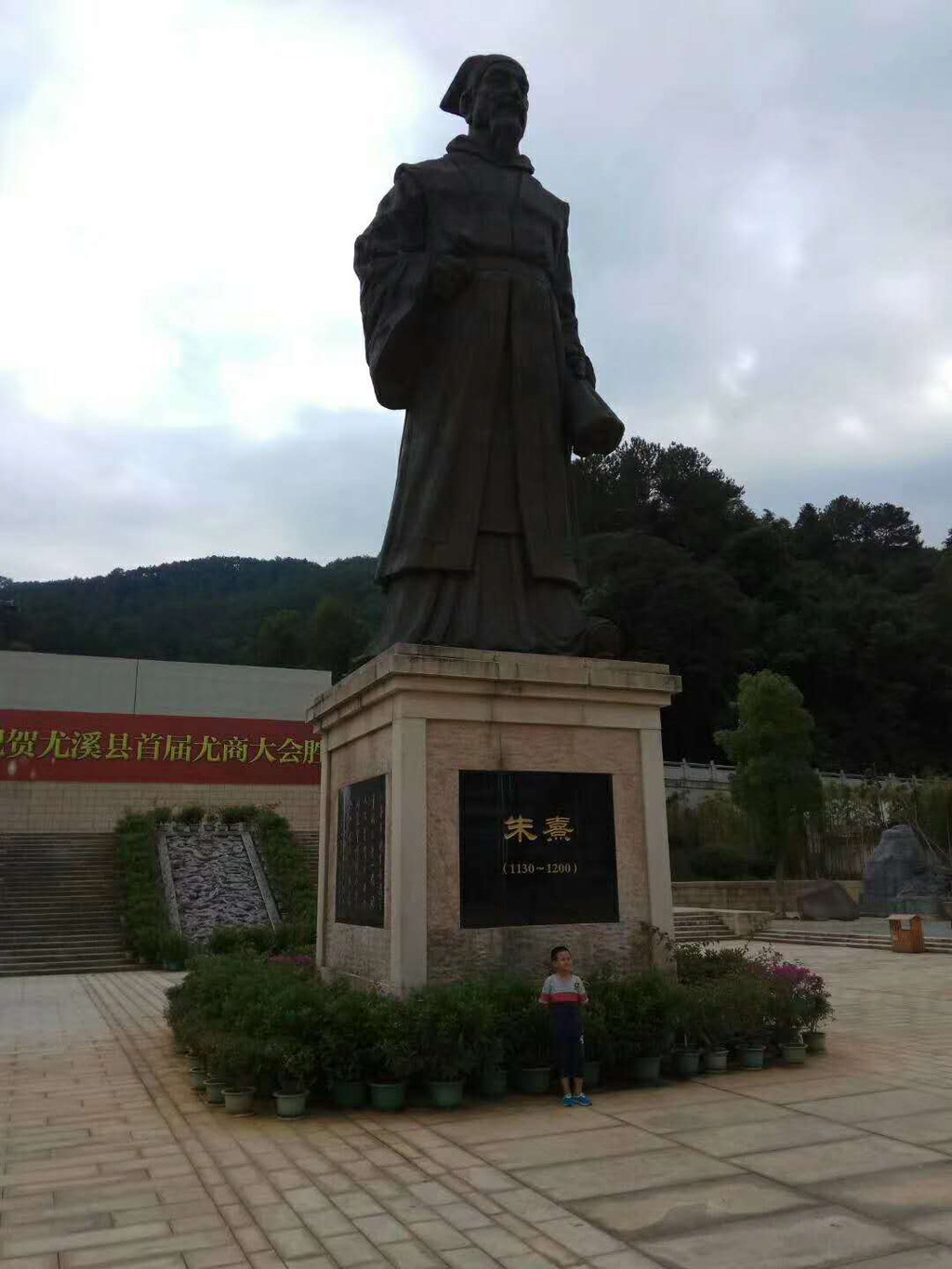 ◎朱松——(1097一1143)字乔年,号韦斋,朱熹之父,绍圣四年生于徽州婺源,绍兴十三年卒于建州(今建阳)城南环溪,葬于崇安五夫里,享年四十六——宋宣和五年(1123)调任尤溪县尉届满,寓居城南郑氏溪南馆。建炎四年九月十五日,朱熹诞生于此,并受教于该馆。绍兴六年(1136)随父迁建州,后朱熹曾多次回尤探亲、访友、讲学,并留下“韦斋旧治”墨宝,纪念其父——此刻碑尚存,现立于朱松任县尉燕居遗址前(尤溪县衙左侧,文庙对面,今尤溪宾馆前,见图1)。二零一五年尤溪县拆巨资(应在九位数以上)于溪南馆废墟上建“朱子文化园”,除此刻碑外,惟有遗址上一株千年老樟树为“真古董”耶!