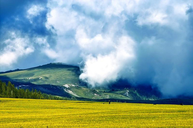 每年6月底前后,漫无边际的油菜花犹如一条条金色的织毯席卷着广袤无垠的昭苏大草原,与天山遥相辉映,壮阔的花海之美。