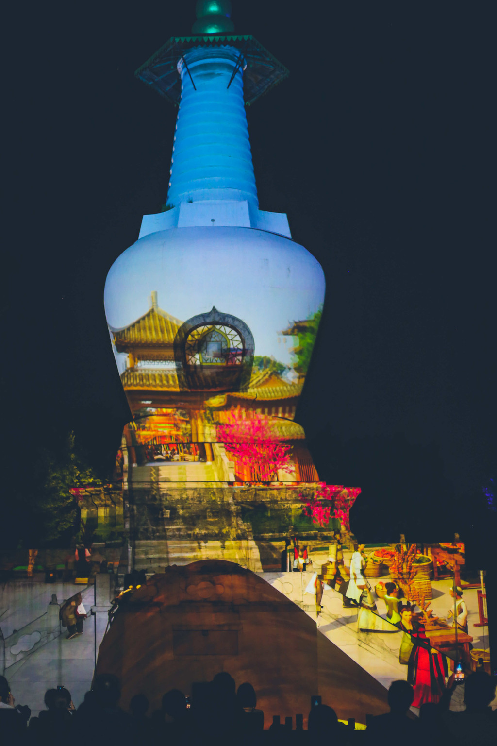 白塔的灯光秀展现了安史之乱后,长安、洛阳等地的商人纷纷来到扬州经商的商贾云集的画卷。杜甫有云:“商贾离别下扬州,忆上西陵故驿楼”。大运河、青花瓷、商贾胡姬、市井风情,令人流连忘返。