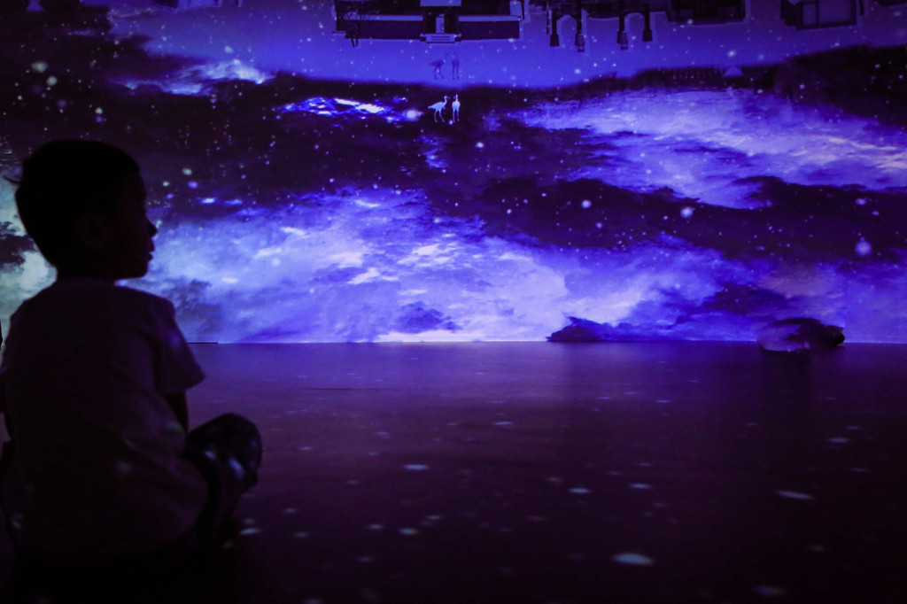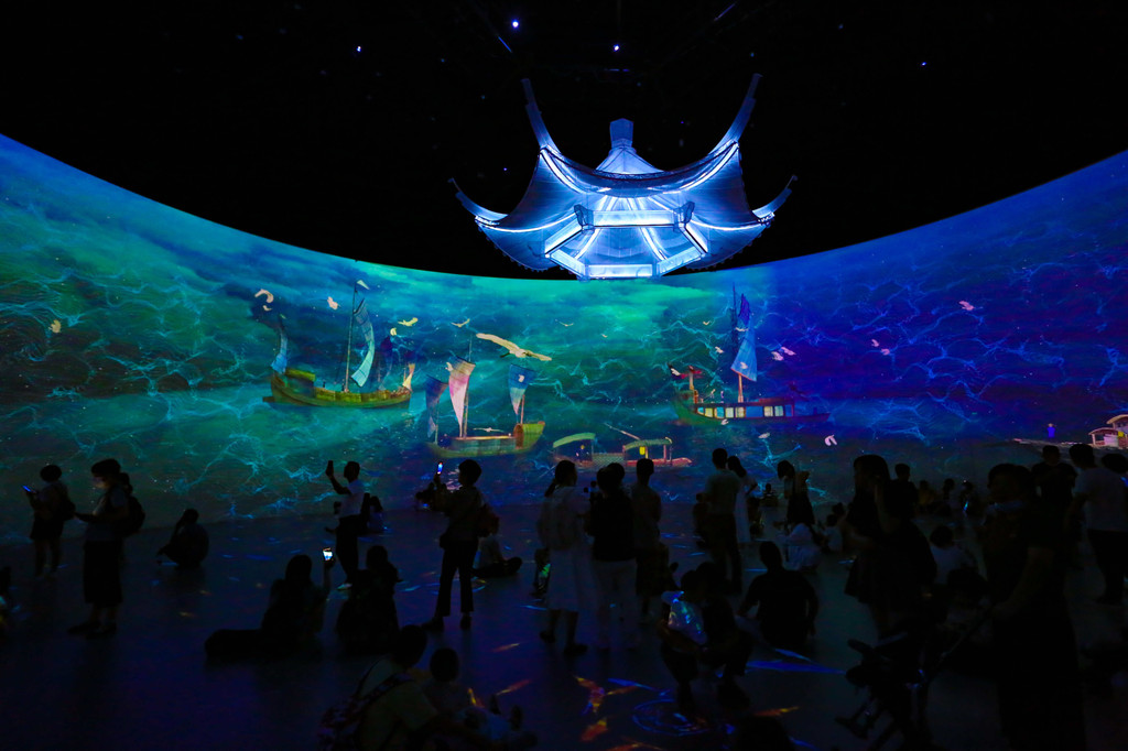 8号馆——河之恋,全景沉浸式体验,基本是360度环绕式景观,观赏性超强,孩子一定喜欢,以水、运、诗、画四个不同的主题场景,分别再现了中国的大运河文化。