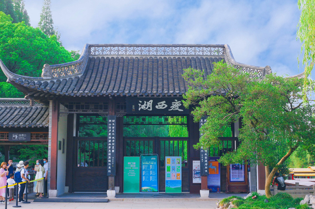 另一处著名的景点便是这钓鱼堂,传说是乾隆帝下江南曾在此垂钓而得名。站在这里还是网红拍照打卡地,因为从亭子的两个圆孔可以分别看到五亭桥和白塔,也造就了一处观三景的奇观。