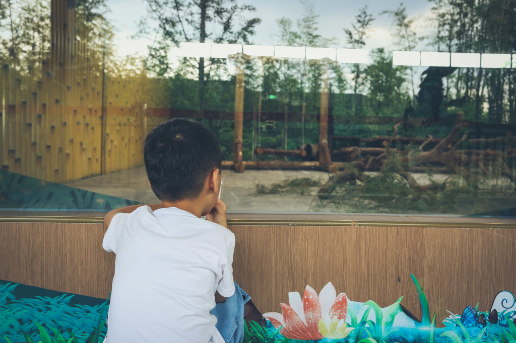 熊猫馆是宝宝们最期待的,世博园内一共有六只可爱的大熊猫,只不过我们下午去的时候其中四只都躲在卧室里睡懒觉,好不容易“捕获”到两只在外围,但是还是大PP对着我们,不太给面子。