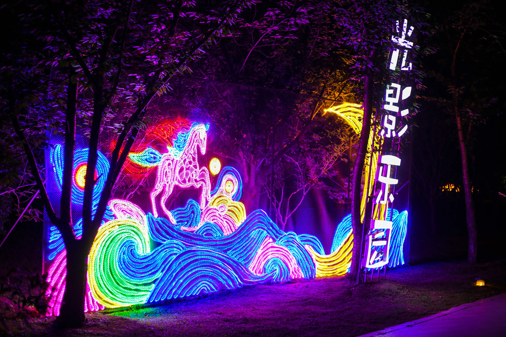 夜游瘦西湖是我们今天最期待的一个项目,夜幕降临,园区的五彩灯光全部点亮,从光影乐园开始,按照景区的建议游览顺序,每个时间段都有不同的灯光演出。