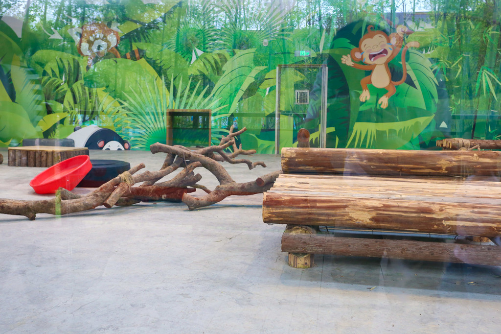 世园会中心湖岛上的熊猫馆,远离主要的参观区,环境相对幽静,而且周边有大片的竹林,相对较为隐蔽,也为六只可爱的熊猫宝宝提供了最佳的栖息之地。