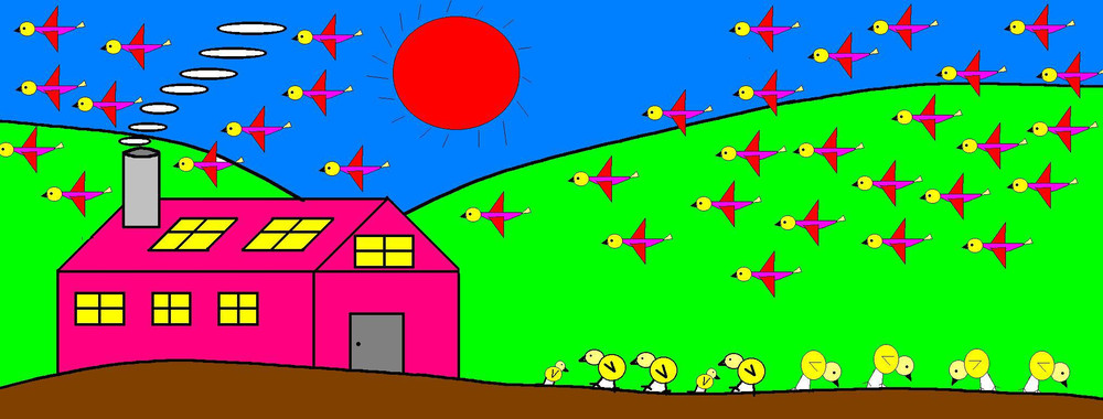 新的一天又来了,经过一夜的相认,一些陌生的人在此结伴同行出发去了远方,还有一些人驻留原来的地方守望着家园,另外那些热爱耕种的特别的农人也选那些风和日丽的时节出门了,你既然选择了出发,你一定就选择了归去,归去来,田园一派青山绿水百鸟来。