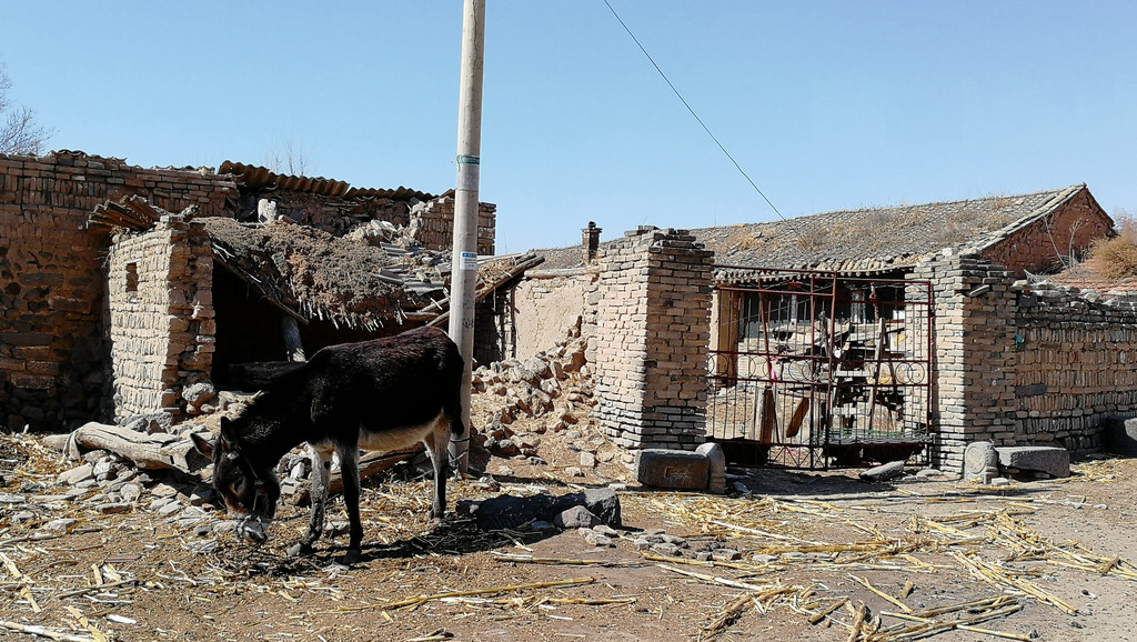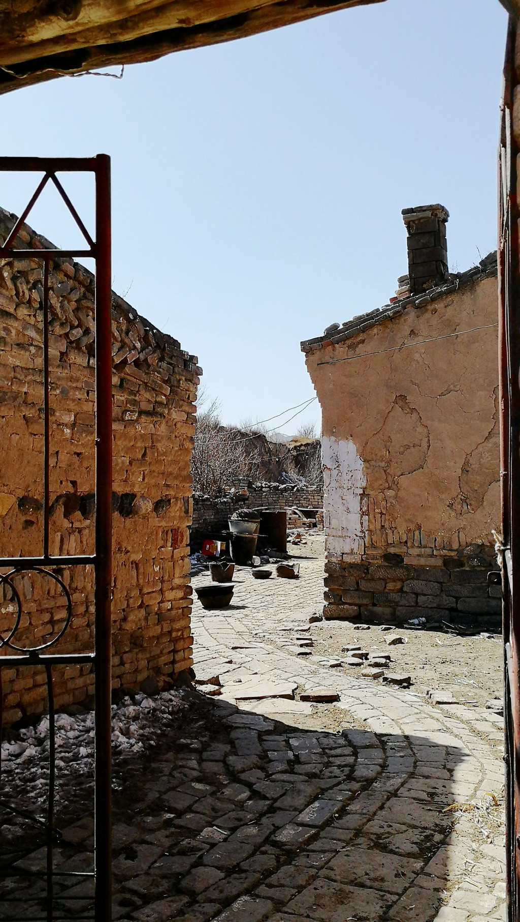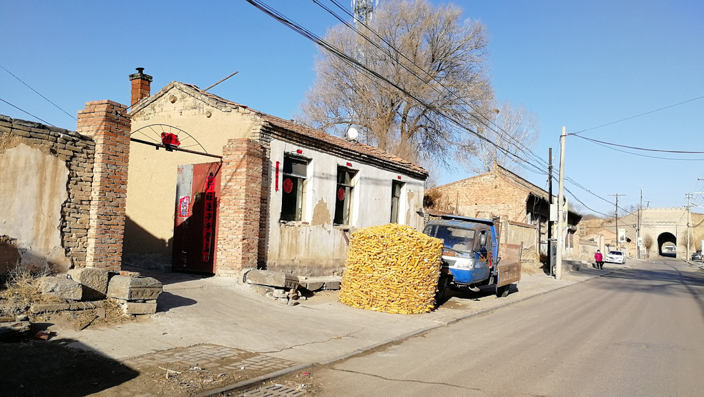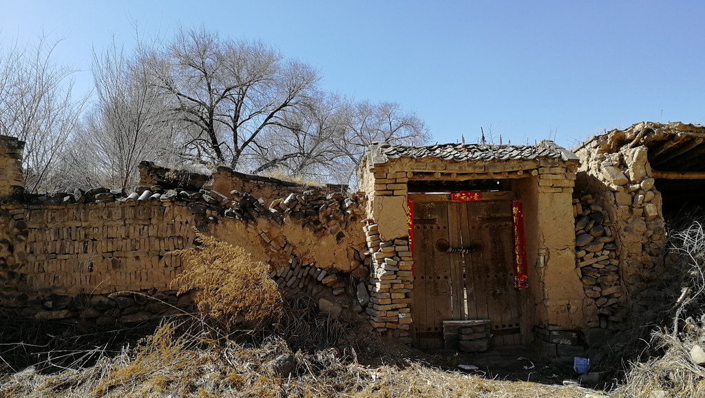 古堡南门出来有几间农户院落,随已无人居住但主人还不忘在新年之际贴上春联给荒凉的宅院添上生机,也证明这些资产是名花有主。