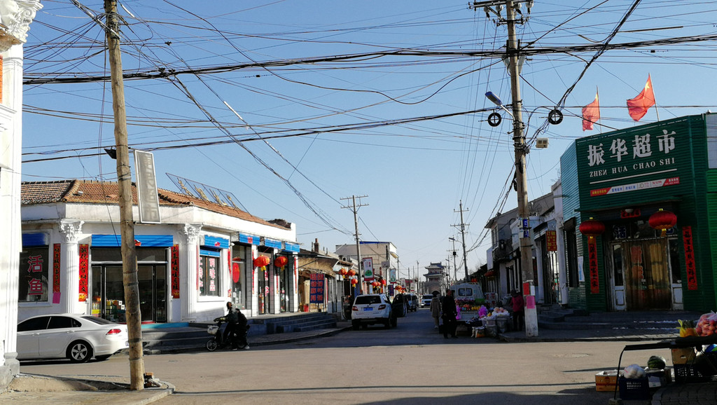 城内东西南北两条街交汇十字路口最为繁华,最大的超市和商场集中在路口的四个角上。