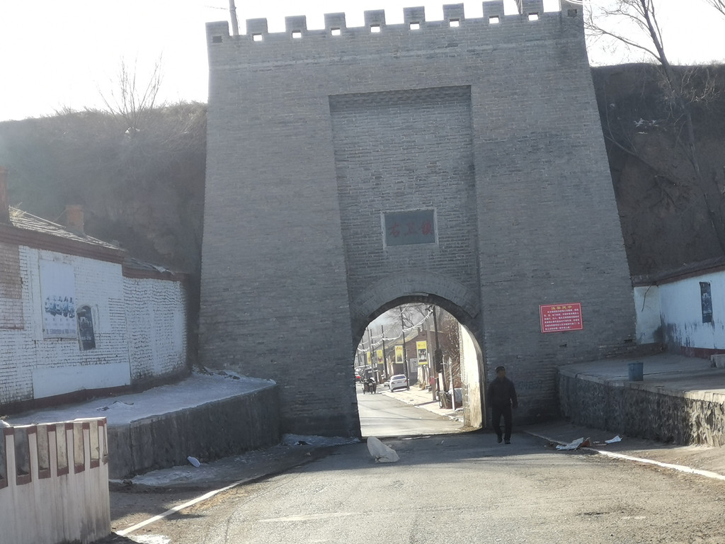 这是西门保持原貌,可以见到瓮城的城门与卫城门不在一条直线。西门曰-定武,东门-和阳,现在被挂上右玉镇大名。