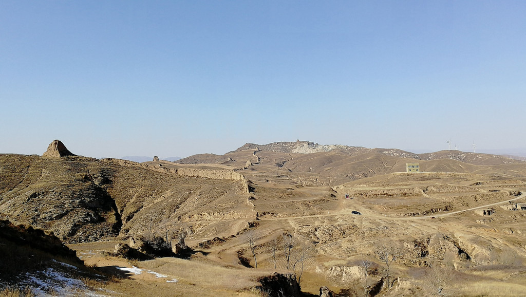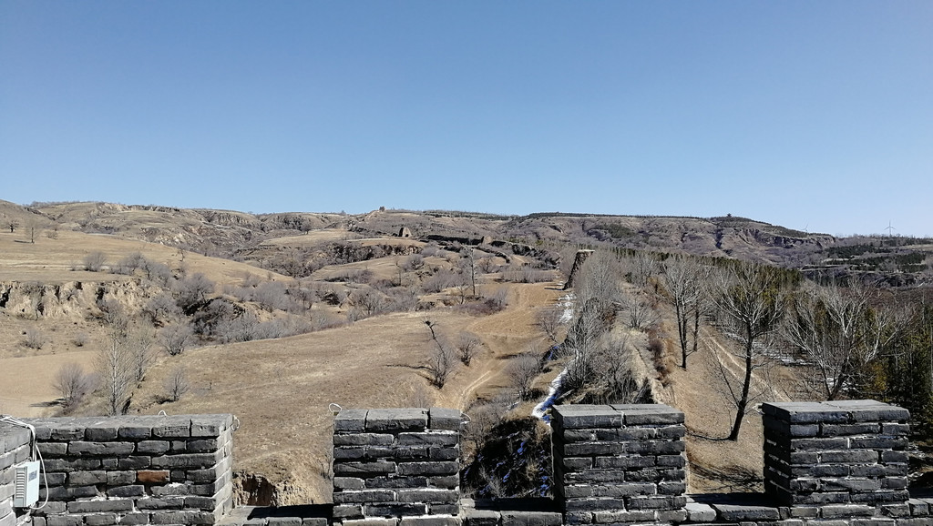 杀虎口出来意犹未尽,继续前往三十二长城。三十二长城位于右卫镇西南大约十几公里的桦林山上,因其边上的三十二村得名,三十二村又得名于明长城进入右玉境内的第三十二个烽火台。