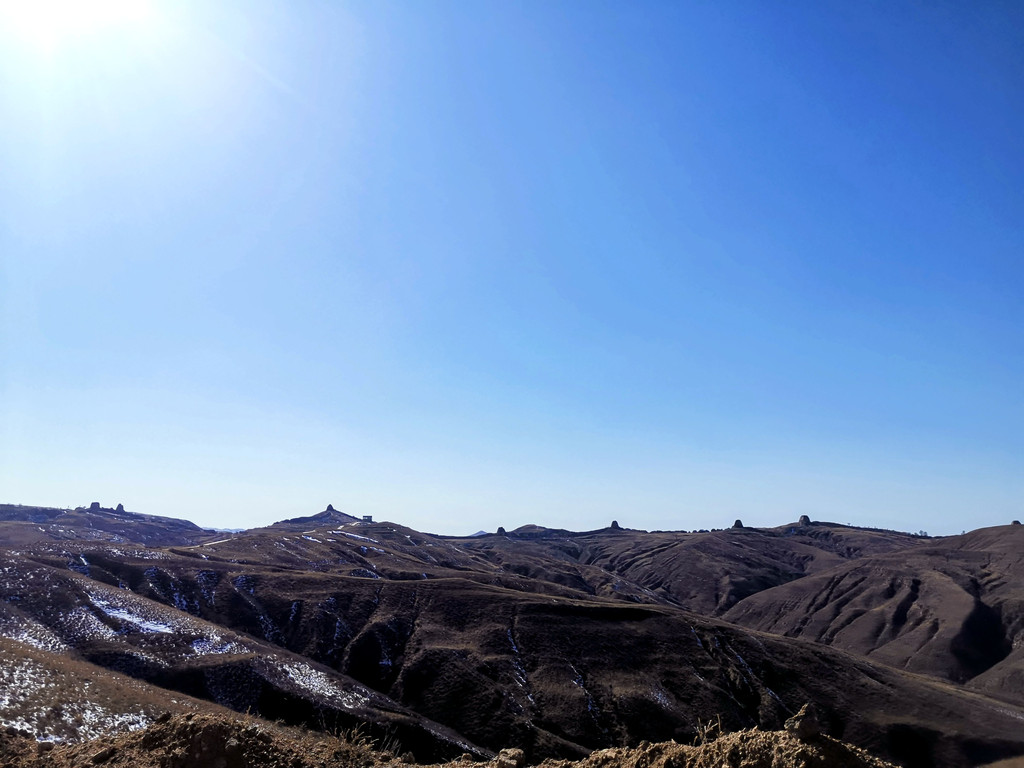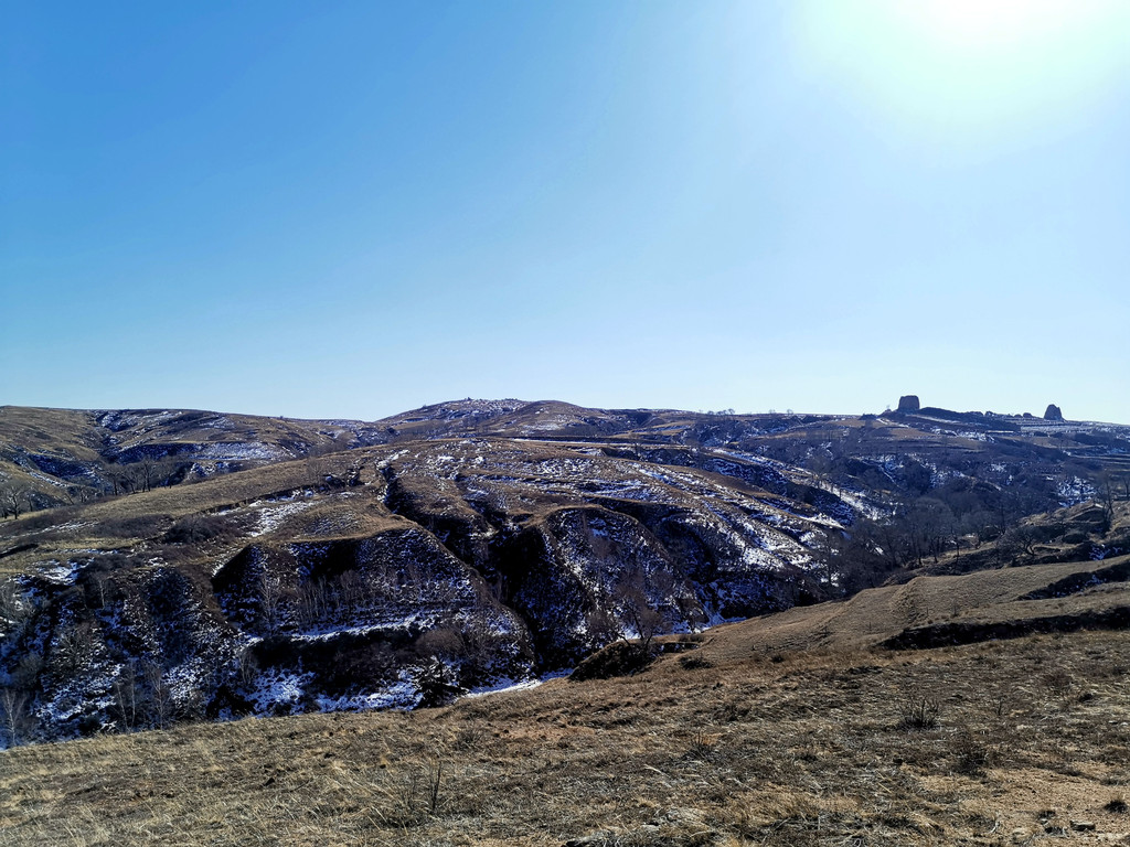 沟沟壑壑,残雪点缀,蜿蜒盘踞,烽火沧桑。我的座驾停靠其中连个点缀都算不上呐~