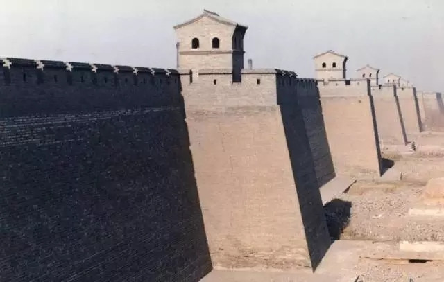 小知识:马面就是凸出城墙墙体外的部分,因外观类似马脸而得名。马面又称敌台、墩台、墙台、城墙垛子等。马面上面各建有一座楼,称望楼,或叫“团楼”。团楼是马面的附属设施,可以用来藏兵和储藏武器,雨雪天气可以为兵士防雨。兵士可以在团楼里值守,一遇敌情,可以随时投入战斗。下图为山西平遥城墙的马面。