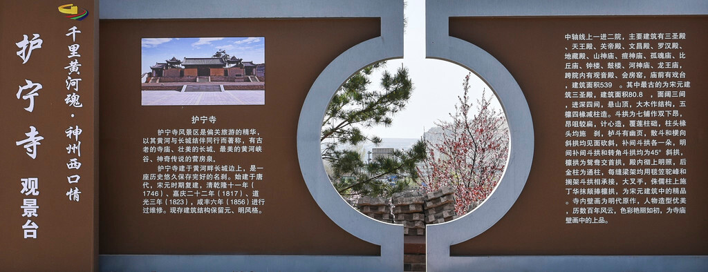 黄河、长城、古刹相聚于此,黄河养育了一代代中华儿女,长城记录了一段段悠悠岁月,古刹寄托着百姓对风调雨顺、美好生活的期盼。